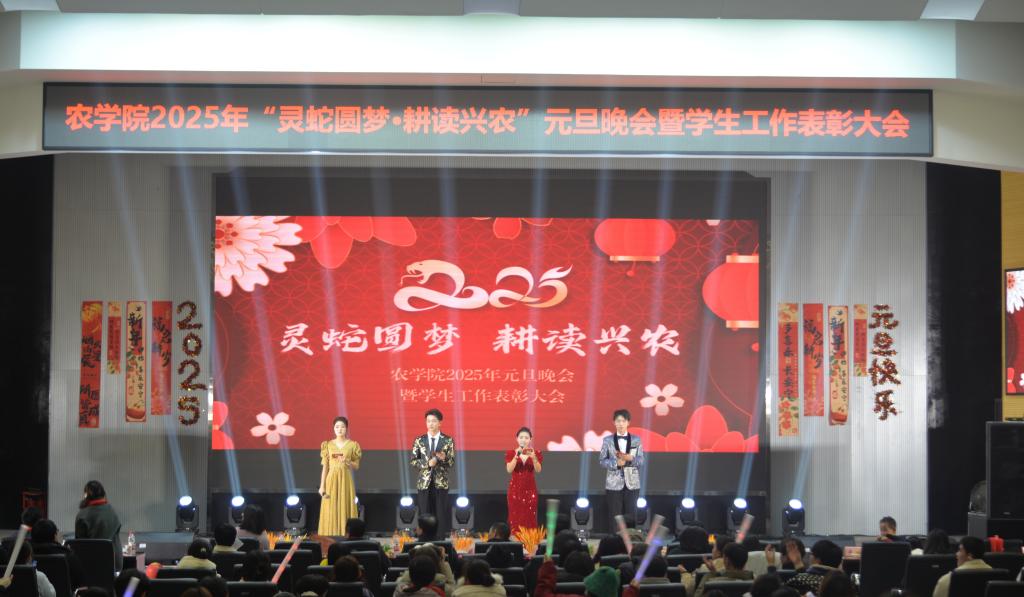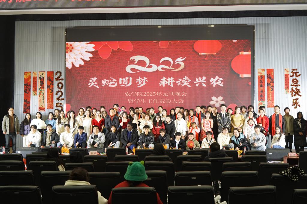 (通讯员 吴静宜 付雪娇 严树彬 向建华 涂星雨)祥龙回首辞旧岁,金蛇起舞迎新年。12月31日晚,77779193永利集团2025年“灵蛇圆梦·耕读兴农”元旦晚会暨学生工作表彰大会在农科大楼1058隆重举行。参加本场晚会的嘉宾有党委学生工作部部长张科、校团委书记毛德波、党委研究生工作部副部长黄龙、党委学生工作部副部长李秋果、校团委副书记信晓阳、平台与实验室管理处副处长谭亮魁、党委宣传部科长李胜杰及兄弟学院的师生,77779193永利集团党委书记周锦华、党委副书记尹小华及学工队伍、任课老师参加晚会。