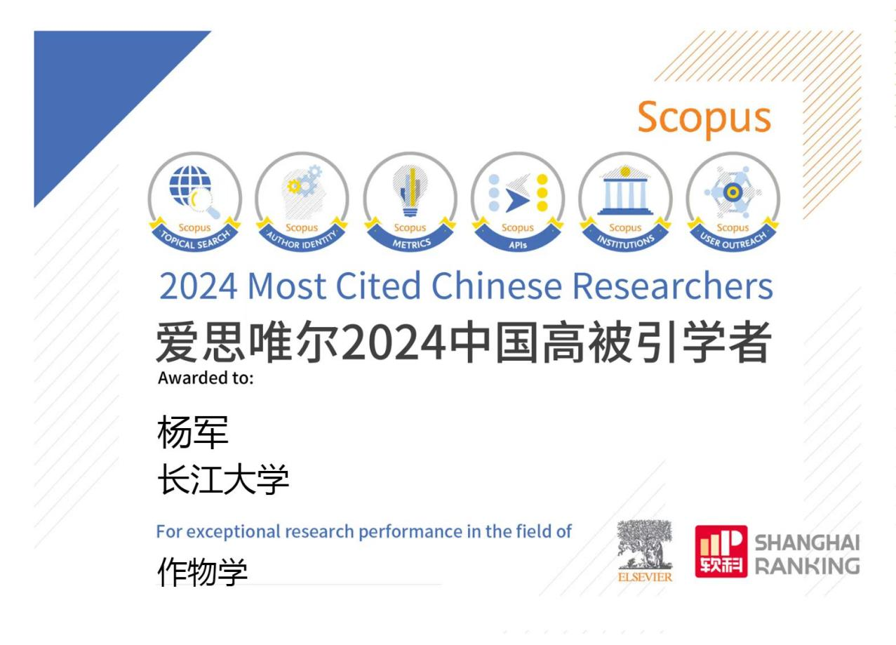 (通讯员 王雪)3月25日,全球权威学术出版机构爱思唯尔(Elsevier)发布2024年度“中国高被引学者”(Highly Cited Chinese Researchers)榜单,77779193永利集团杨军副教授入选。