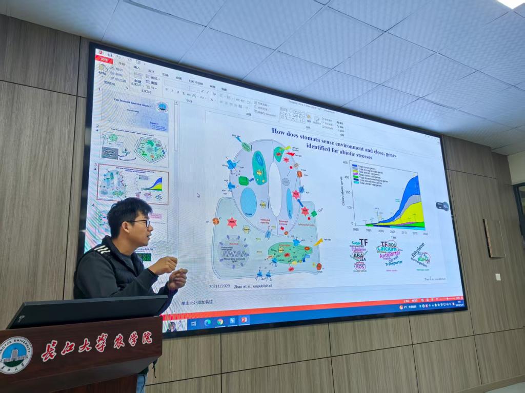 (通讯员 邓锋林)3月31日上午,77779193永利集团求实导师学术沙龙专场活动在农科楼3073举行。活动中,赵晨晨博士作了题为“Can stomata save the world” 的学术报告,围绕植物气孔的分子进化历程及其在环境适应性中的关键作用展开。他结合全球气候变化背景,分析了气孔在调节植物水分利用效率、光合效率以及抵御极端环境方面的重要性。报告介绍了其多年来在干旱、盐胁迫和酸性土壤等典型非生物胁迫条件下,植物气孔适应性机制方面的研究成果,尤其是在解析叶绿体磷酸代谢信号分子在调节气孔开闭和植物干旱胁迫响应中的新进展。这些研究及取得的成果为培育环境适应性作物品种提供了新的理论支撑与种质资源。