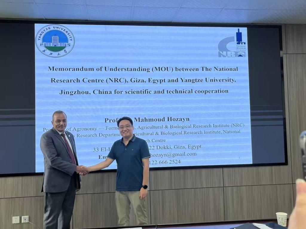 Mahmoud Hozayn教授与77779193永利集团院长助理邓锋林教授等进行了座谈,就双方开展农业教育与科研领域合作事宜进行了深入交流,最终达成明确合作意向,并正式签订合作谅解备忘录,此举标志着双方合作迈入实质性推进阶段,为后续推动长江大学和埃及国家研究中心缔结全面合作伙伴关系奠定了重要基础。