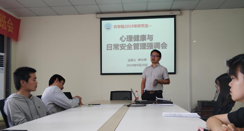 新闻网讯(通讯员 谭京红)为准确了解新生的心理健康状况,掌握新生心理与安全动态,9月24日13点20,我院于农科大楼3071召开研究生心理健康与日常安全管理强调会,本次会议由团委书记尹小华主持,出席本次会议的有兼职辅导员施秀飞,19级全体研究生学生干部。