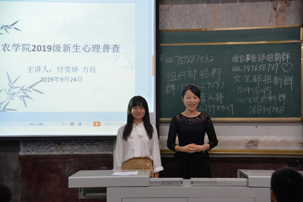 新闻网讯(学生记者 吴畅)为了解19级新生的心理现状,提升我院心理健康教育工作水平,9月24日13时30分,我院于农科大楼3071开展研究生心理普查活动,当天19时,我院于3教T1和T2开展本科生心理普查活动。19级全体新生在团委书记尹小华、心理专干万钰和辅导员付雪娇的指导下参与此次活动。