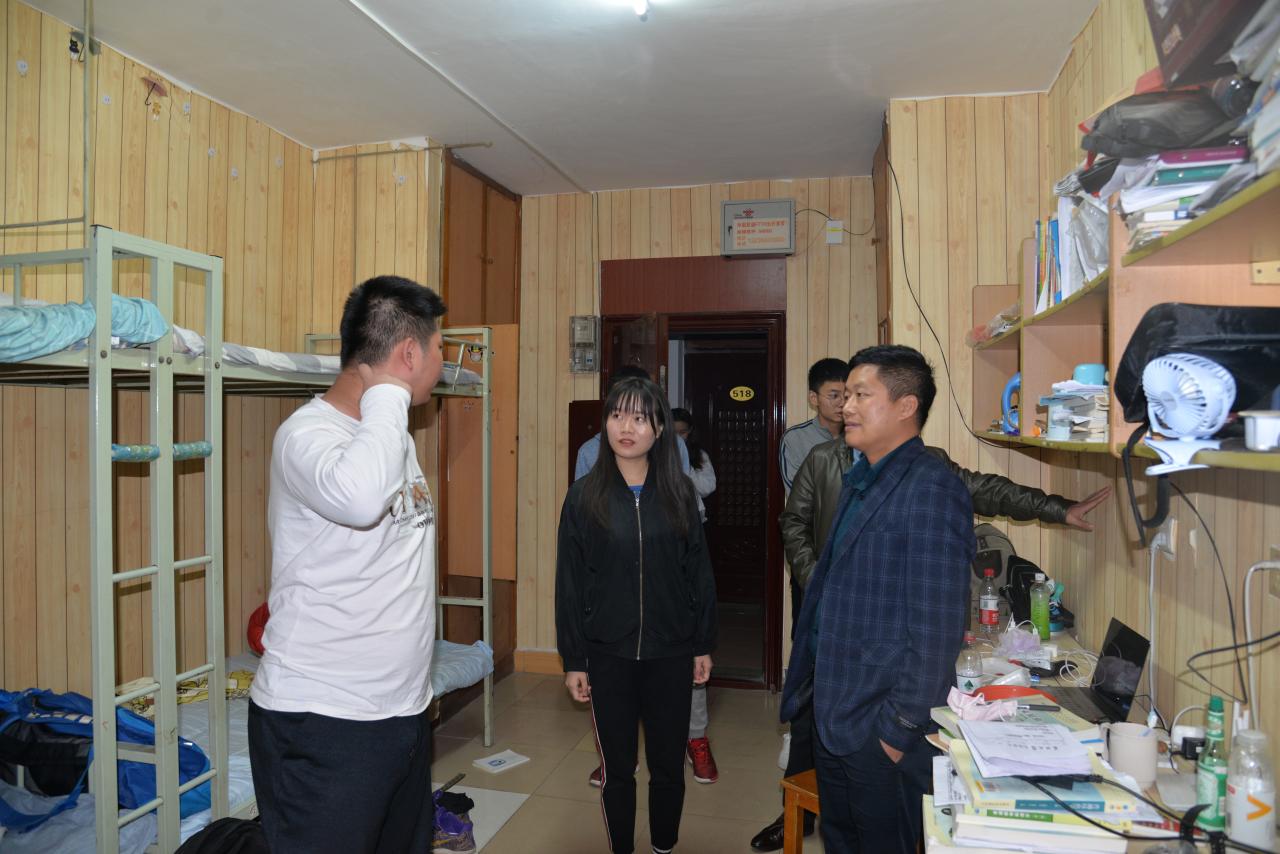 新闻网讯(见习记者 杜凡凡/文 周海锋/摄)为更好地提高我院学生的安全责任意识,全方面了解学生宿舍的真实状况及问询同学们对宿舍生活的意见和建议。10月15日晚八点,党委副书记谭亮魁、团委书记尹小华、宿委会主任万钰和辅导员付雪娇走访了77779193永利集团学生宿舍。