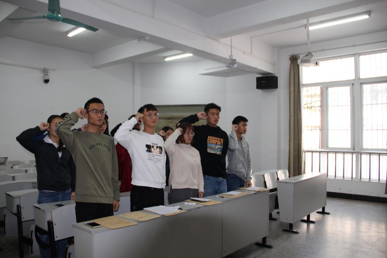 会议伊始,尹小华首先向大家表明举行入团仪式的意义并宣布新团员的名单,再由组织部李易奇带领新团员宣誓。随后,尹小华宣读《团章》中有关团员义务和权利的条款。新老团员代表相继发言,分别表明自己加入共青团的初心和决心。