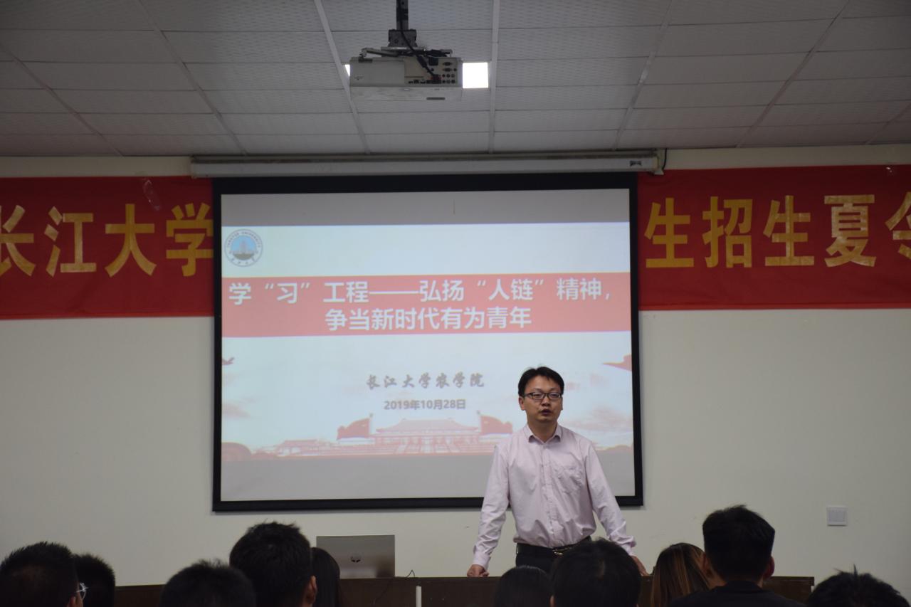 通讯社讯(见习记者 李建平)为进一步贯彻落实中央领导同志重要批示精神,深入学习宣传大学生英雄集体的优秀品德和崇高精神,深刻领会大学生英雄集体的精神价值,我院于10月23日晚19:00在农科大楼3073会议室开展弘扬“人链”精神,争当新时代有为青年学习活动。本次活动由植物类31902班团支书孙振艳主持,团委书记尹小华,17、18级副团支书及19级全体班委参与此次活动。