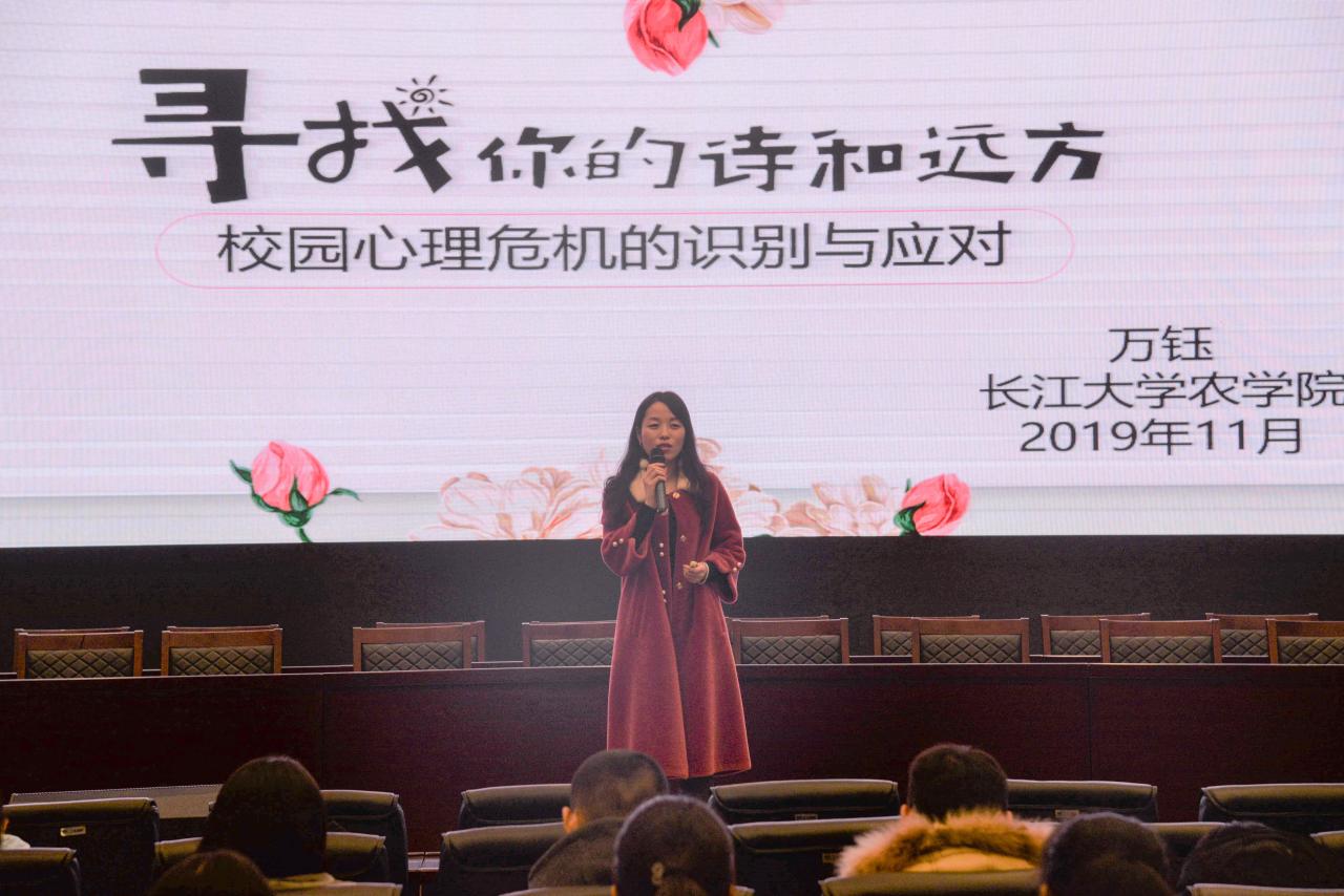 通讯社讯(见习记者 聂子龙/文 汤莉/摄)为进一步提高大学生的心理素质,促进大学生的身心健康和谐,宣传普及心理健康知识,深入开展心理健康教育。我院于11月30日20:00在农科大楼1058会议室召开了以“大学生心理健康教育”为主题的讲座。辅导员万钰担任主讲人,2018、2019级全体成员参加此次会议。