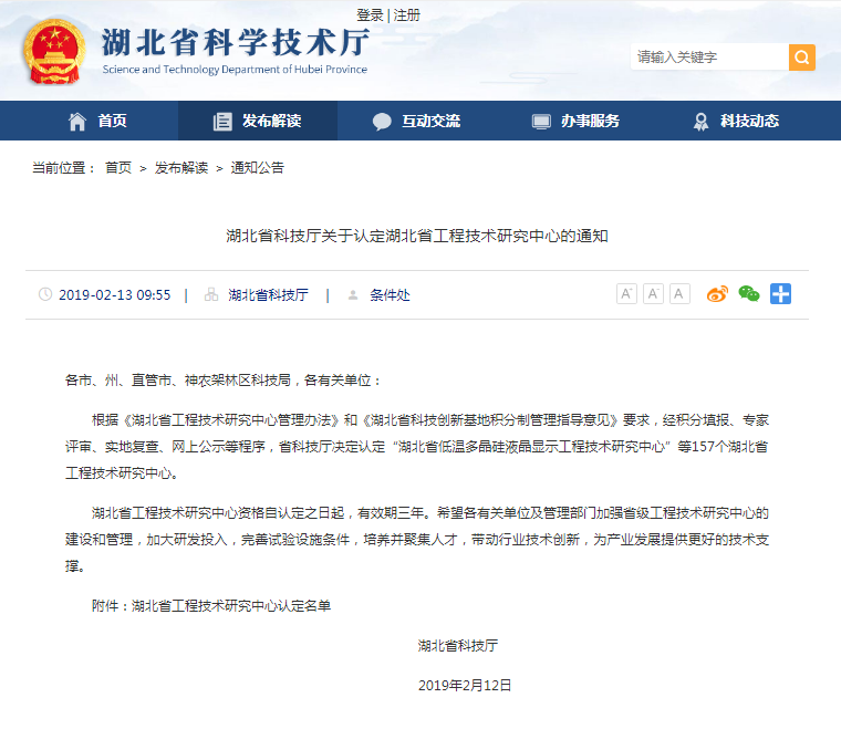 湖北省科技厅关于认定湖北省工程技术研究中心的通知--湖北省科学技术厅