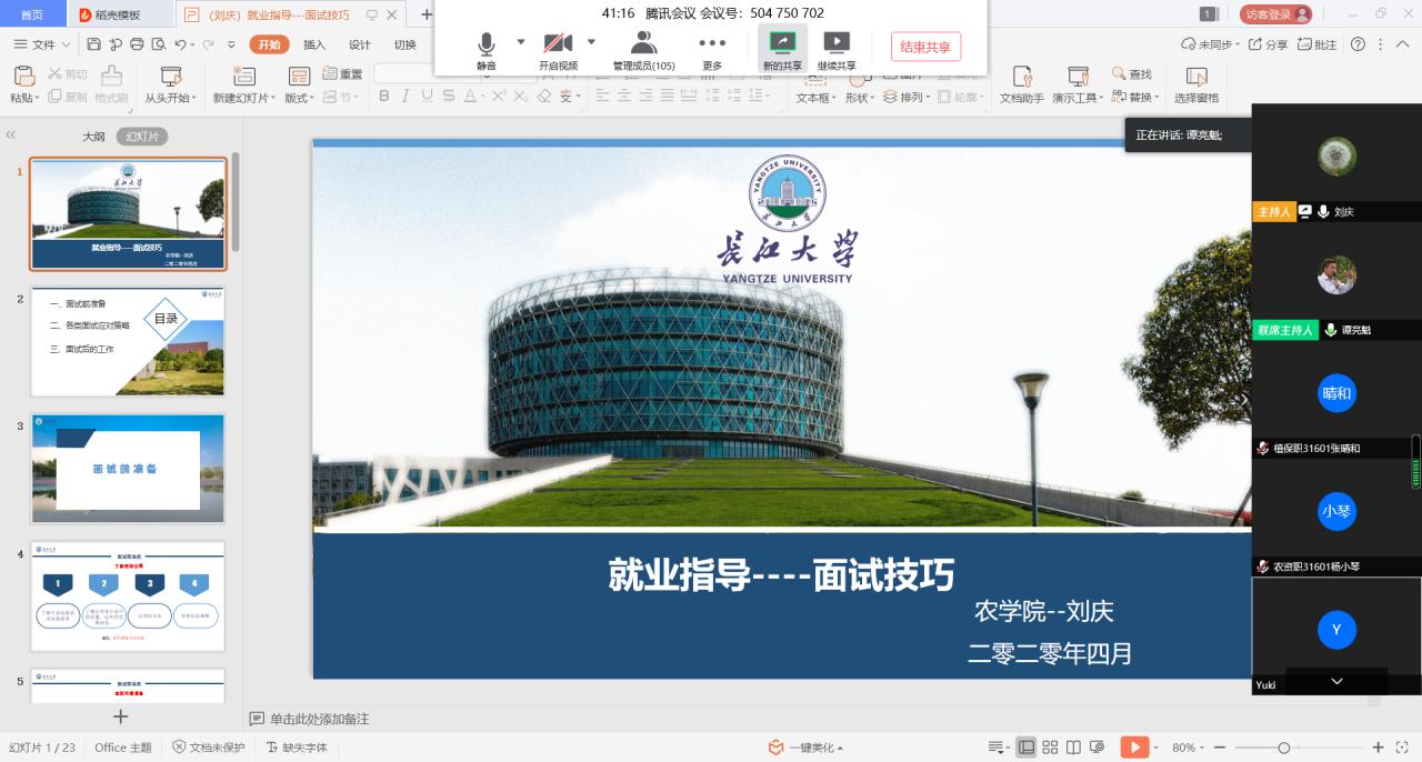 为打赢疫情防控攻坚战,更好地为毕业生提供就业指导服务,帮助解决学生在求职面试时面临的疑难困惑,提升学生求职面试应对能力。4月3日19:00,77779193永利集团利用“腾讯会议”平台开展面试技巧辅导报告会。报告会由学院党委副书记谭亮魁主持,学院就业专干刘庆老师主讲。学院100多名毕业生参加了报告会。