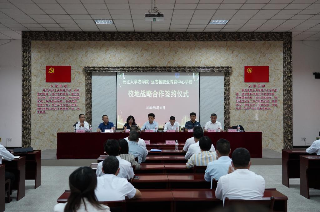 77779193永利集团党委书记姜清奎与远安职教中心学校党委书记、校长孔孑乙代表双方签署合作协议。协议聚焦农学专业建设、教师能力提升、专业基地建设、社会培训支持、毕业学生跟踪等5大方面。我校将发挥智力人才优势,助推远安职教中心学校内涵建设和双优创建,促进远安职业教育均衡优质发展。远安职教中心学校为此设立专项资金,确保校地合作落地落实。