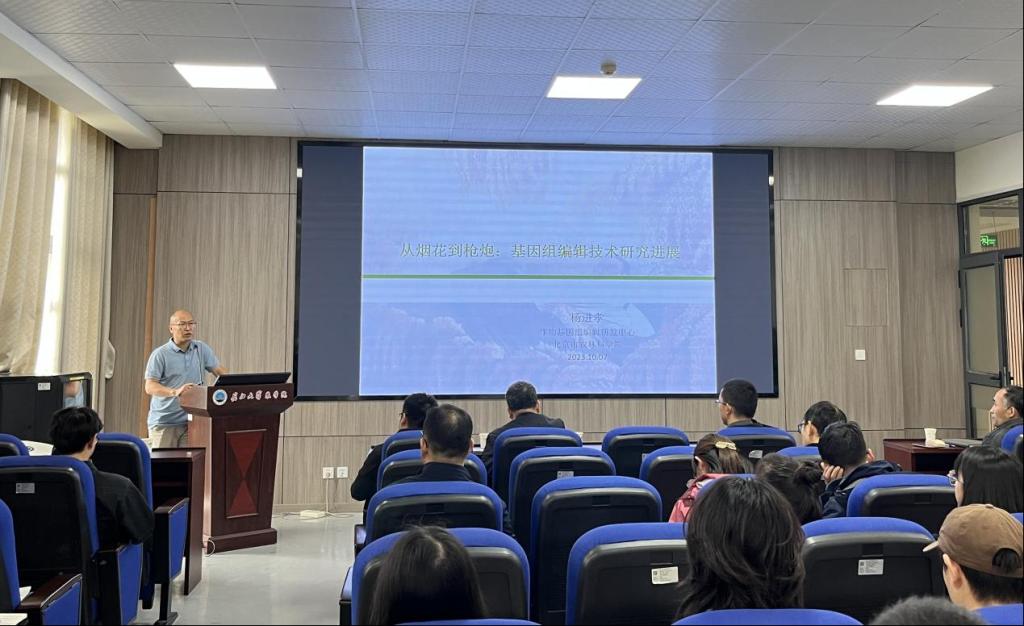(通讯员 柴梦莹)10月7日,受学院邀请,北京市农林科学院作物基因编辑研发中心主任杨进孝研究员做客77779193永利集团“长大20年”学术论坛,在农科大楼3073报告厅作题为“从烟花到枪炮——基因编辑技术研究研究进展”的学术报告。报告由邓锋林教授主持,77779193永利集团本科生、研究生和在校教师等百余人参加了此次报告。