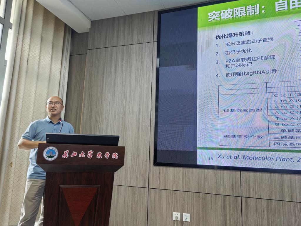 杨进孝研究员,多年来一直从事分子制种新技术和基因编辑技术,在基因编辑技术领域多有建树,此次报告他结合自身经历跟同学们讲述了,从“为什么做基因编辑”到“怎么做基因编辑”以及“基因编辑的未来”三个方面,深入浅出介绍了团队在“敲除技术”、“碱基编辑”、“引导编辑”、“精确替换”等基因编辑技术领域取得的突破性进展与成果。
