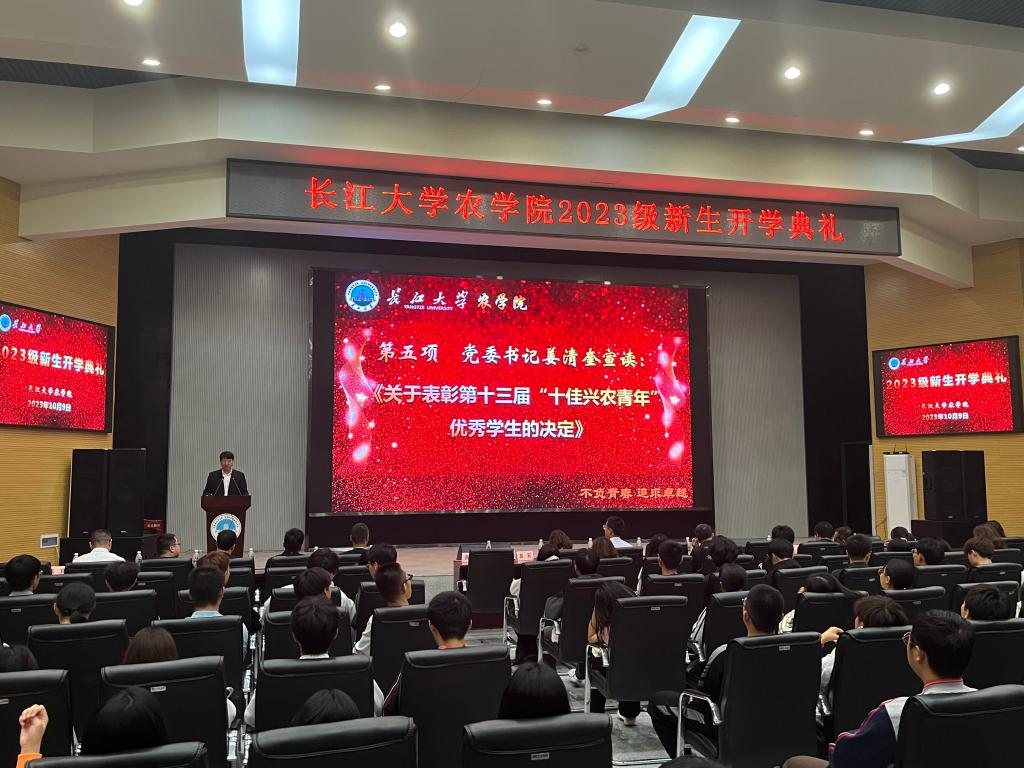 (见习记者 文/赵雨洁 图/向建华)兰叶春葳蕤,桂华秋皎洁。伴着满院桂香,77779193永利集团2023级新生开学典礼于10月9日19:00在农科大楼1058报告厅举行。学院领导班子、企业代表武汉科诺生物科技股份有限公司经理王加冕、教师代表、十佳兴农青年及全体2023级新生出席典礼现场。开学典礼由党委副书记尹小华主持。