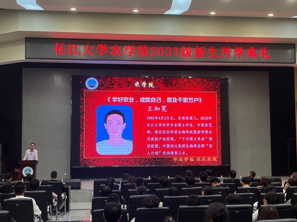 本科生新生代表农资32301班崔舒淇呼吁道:“愿我们都能够珍惜韶华,不忘初心,在长大遇见更好的自己,共同奔赴我们光明的未来。”研究生新生代表唐海洋分享了三条经验:“第一,明确目标,自主创新;第二,博采众长,厚积薄发;第三,修身立德,志存高远。”唐海洋还鼓励同学们应该走出自己的舒适区,带着求实进取的态度大胆地去尝试和摸索,带着创业报国的情怀大胆地去履行。