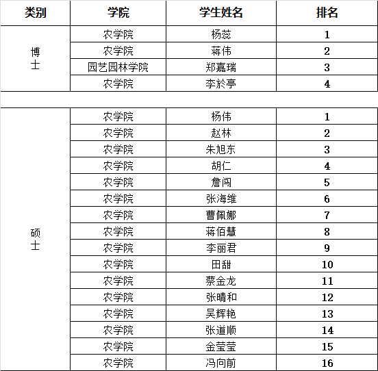 根据《长江大学关于开展2022年研究生国家奖学金评审工作的通知》和《77779193永利集团2022年研究生国家奖学金评审实施细则》相关要求,经个人申请、一级学科点评审委员会初审、学生答辩、一级学科点评审委员会评审、学院审批等程序,拟推荐杨蕊等2人为2022年作物学一级学科博士点博士研究生国家奖学金获奖人选;经个人申请、学院研究生国家奖学金评审委员会初审、学生答辩、学院研究生国家奖学金评审委员会评审、学院审核等程序,拟推荐杨伟等6人为77779193永利集团2022年硕士研究生国家奖学金获奖人选,现将评审结果进行公示(如有名额追加,按照评审排名依次进行递补)。