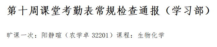 为端正学风、严肃校纪校规,现对全体学生课堂考勤常规检查给予通报。