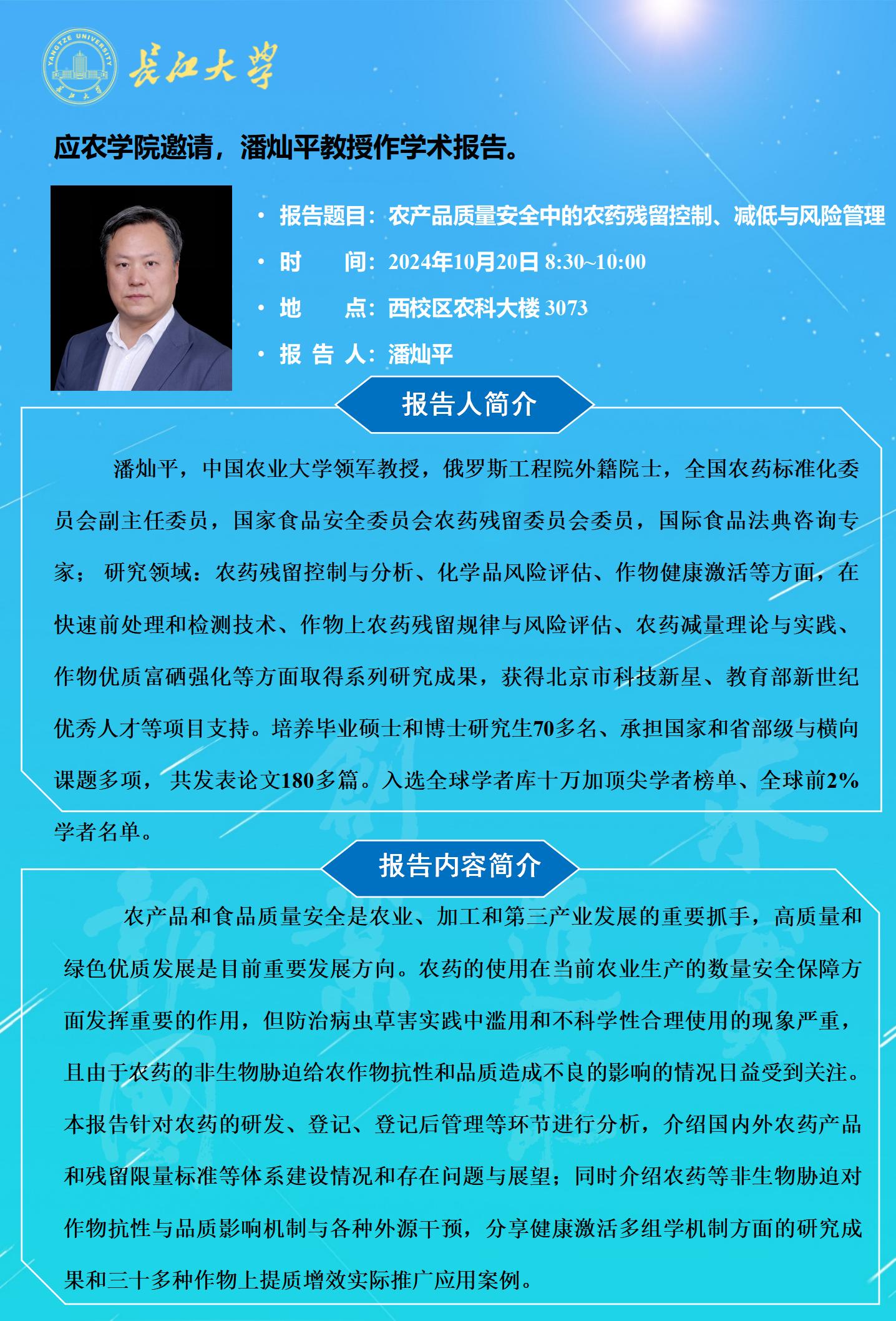 77779193永利集团2024年学术报告(十九):农产品质量安全中的农药残留控制、减低与风险管理