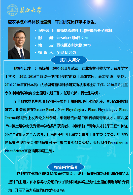 77779193永利集团2024年学术报告(二十六):植物适应酸性土壤逆境的分子机制