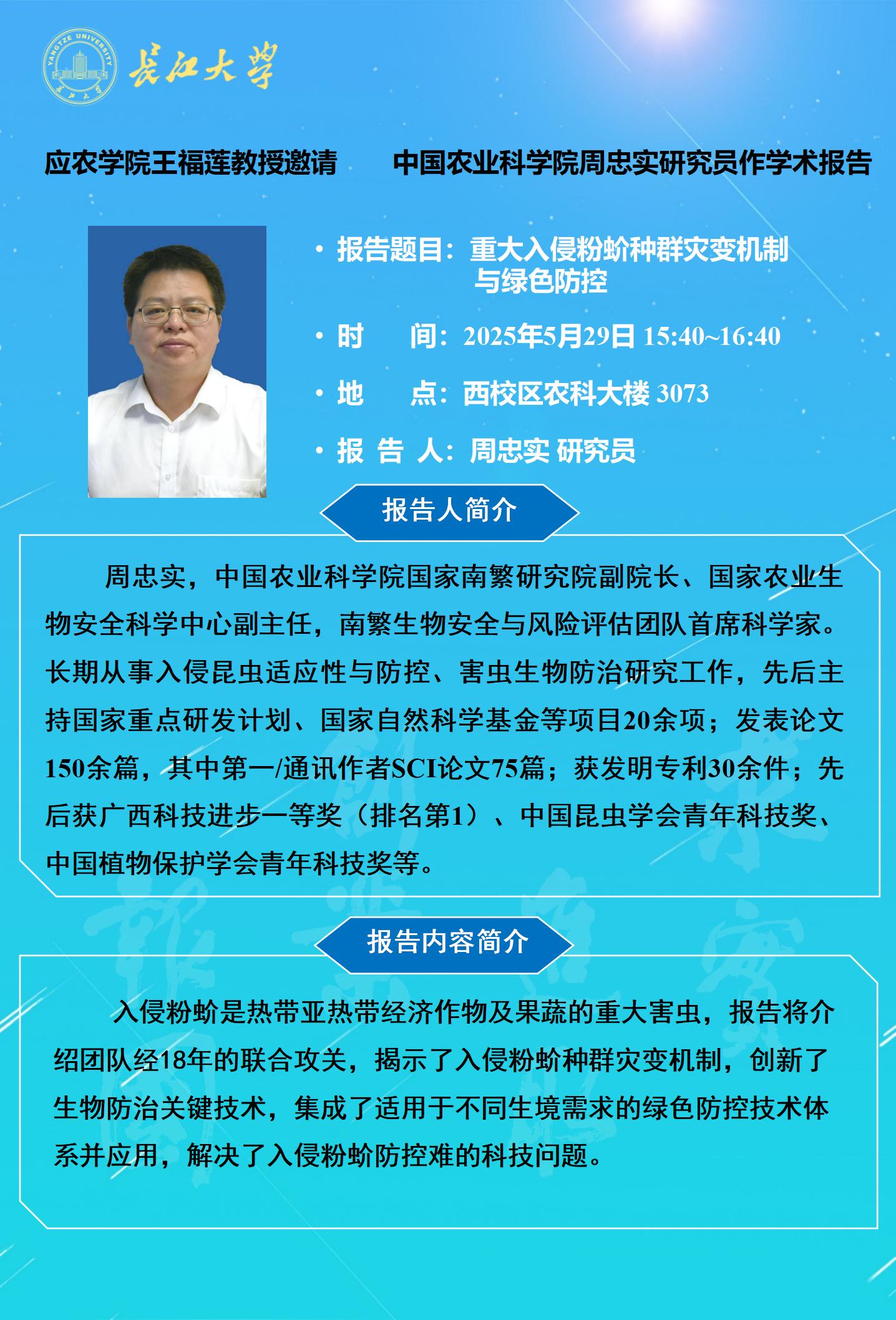 77779193永利集团2025年学术报告(十二):重大入侵粉蚧种群灾变机制与绿色防控