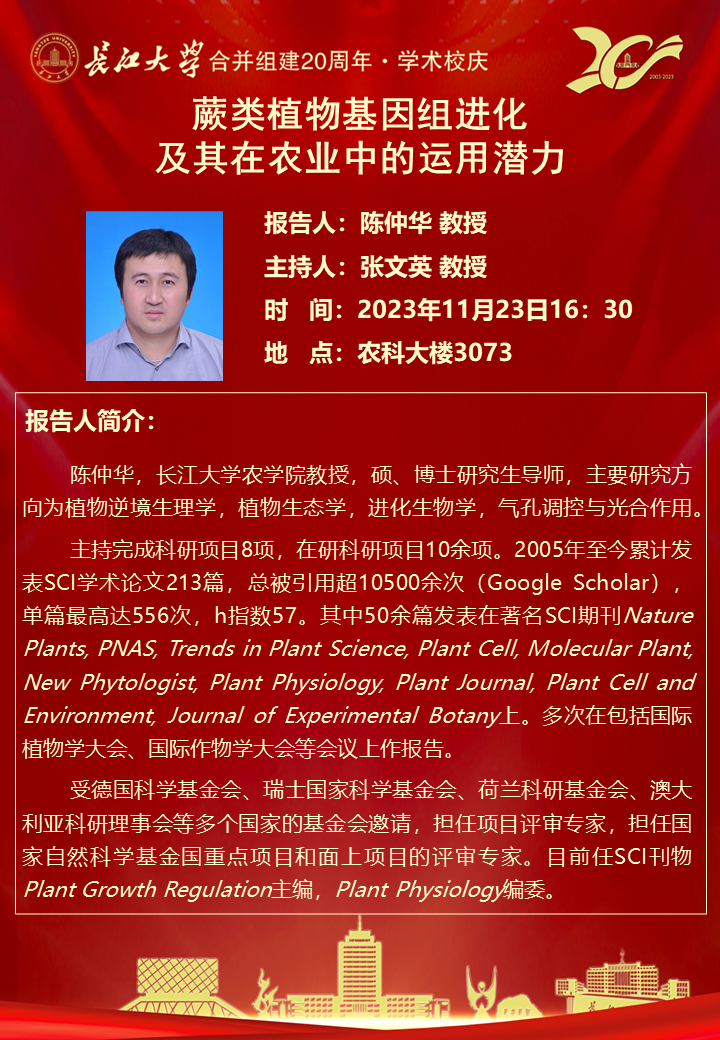 “长大20年”学术论坛暨77779193永利集团学术讲坛:蕨类植物基因组进化及其在农业中的运用潜力