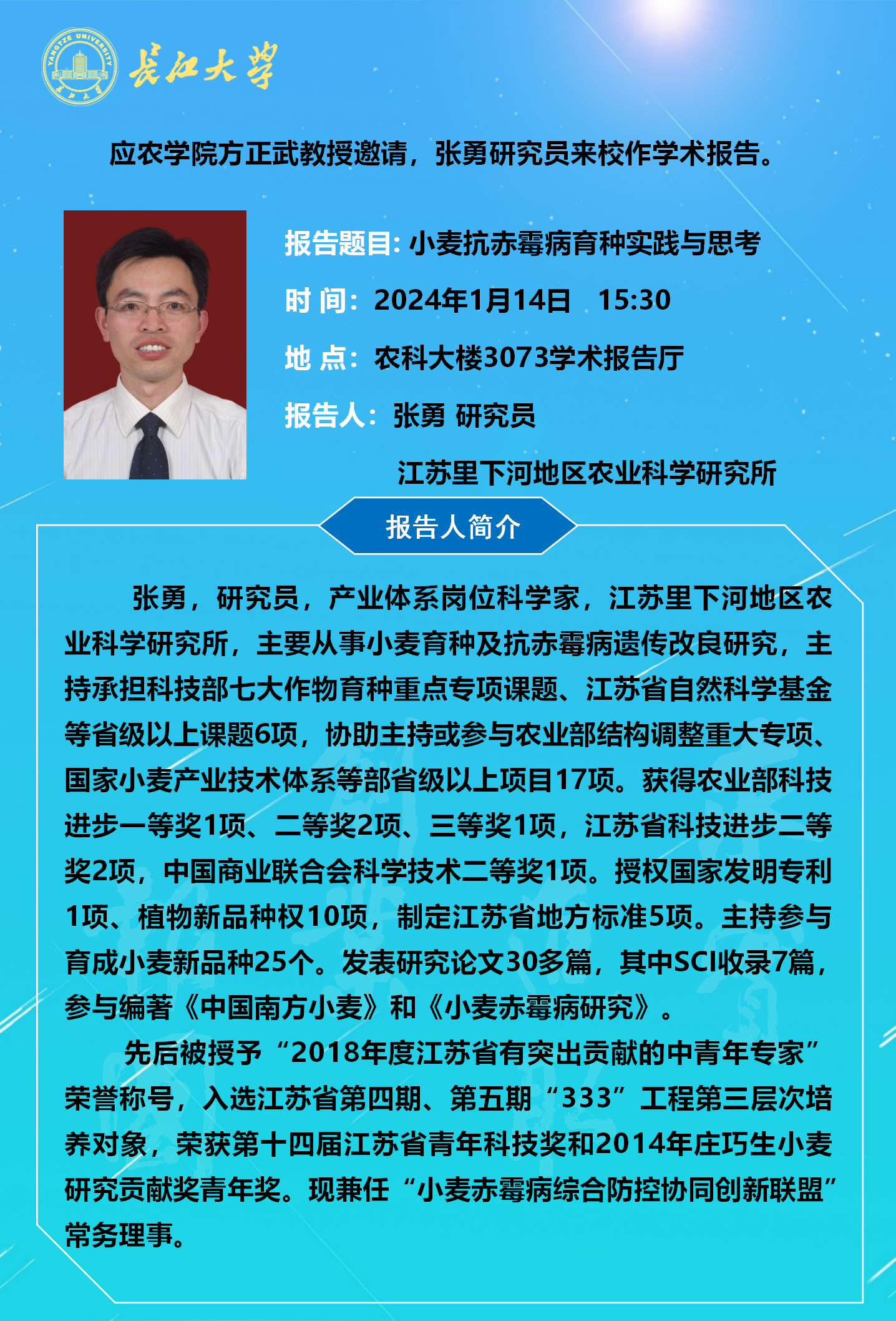 77779193永利集团2024年学术报告(五):小麦抗病育种分子元件创新与运用