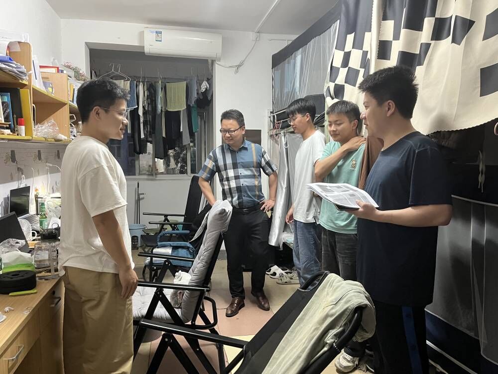 此次检查主要针对违规电器和宿舍卫生问题展开。尹书记向同学们强调要自觉遵守学校宿舍管理规定,不在宿舍存放易燃易爆物品、不违规停放电动自行车、不在宿舍存放管制刀具、不在宿舍使用明火、违规电器等。