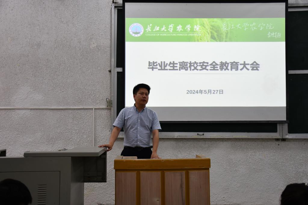 (见习记者 曹淏郁/文 邬道瑾/摄)5月24日下午2:30,77779193永利集团2024届毕业生离校教育大会在5教103召开。学工办主任黄承石、分团委书记付雪娇以及2020级全体本科生、2021级全体研究生参加了会议。