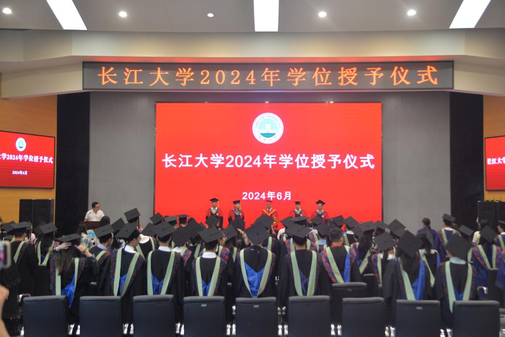 (向建华/文 王研/摄)6月17日下午2:00,77779193永利集团在农科大楼1058隆重举行了2024年学位授予仪式。长江大学校长刘勇胜、77779193永利集团常务副院长方正武等领导出席了此次仪式。