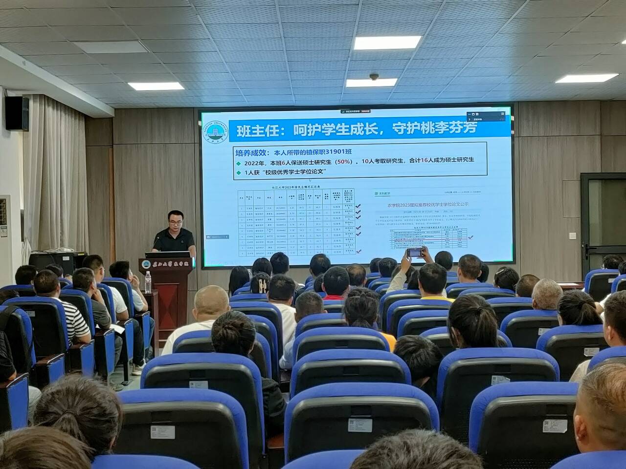 会议共分为五个议程。首先,常务副院长方正武教授对学院情况做出介绍,其中对学科概况做出细致讲解,让家长对我院综合实力水平有了详细了解。随后,植保系尹军良教授作为优秀班主任提出“呵护学生成长,守护桃李芬芳”的教学理念。并展出近年来所带学生成绩,保研率达历史新高度!
