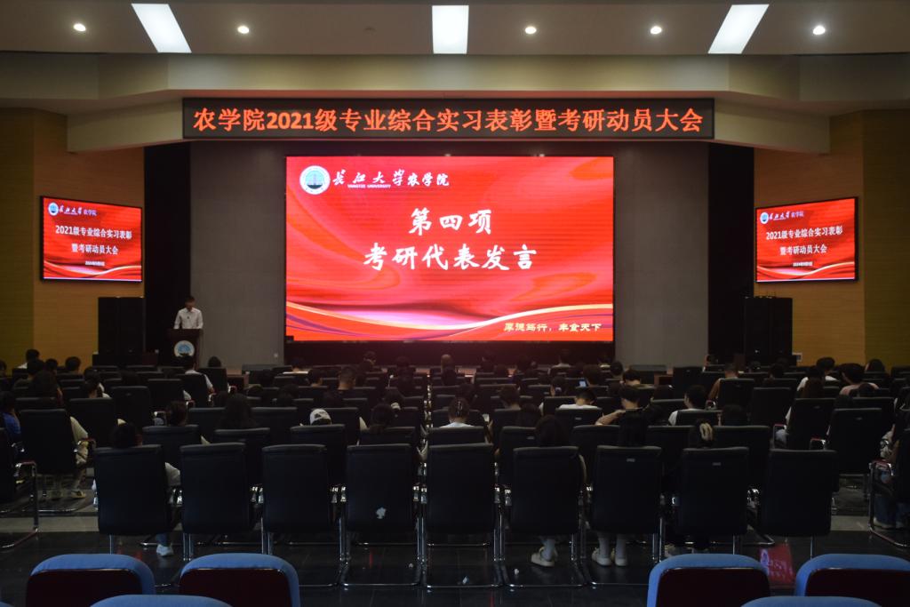 考研代表黄天宇、袁艺进行了发言,他们为学弟学妹们提供了自己的经验。黄天宇说:“考研分数线越来越高,但是只要大家努力一点,再努力一点,一定会取得理想成绩!”