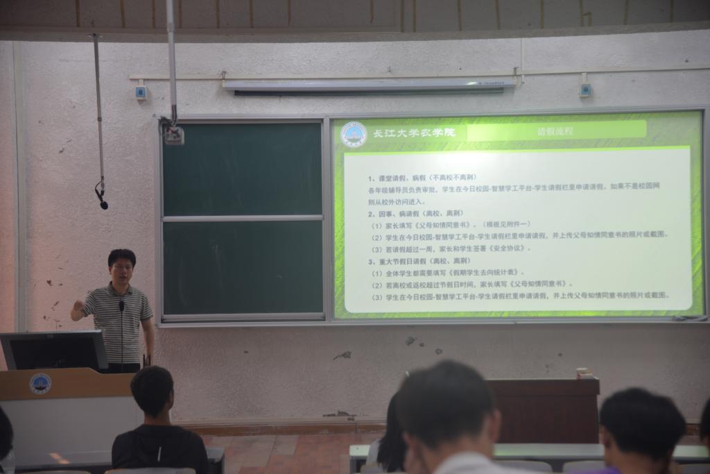 首先,学工办主任黄承石提出长江大学已启动2023-2024 学年本科生国家奖学金初评工作,为激励优秀学子不断进取提供了重要契机。同时,2022 - 2023 学年先进集体和个人的评选通知也已发出,旨在表彰过去一学年中表现突出的集体和个人,树立榜样。黄老师呼吁所有学生踊跃报名,争取评奖评优。