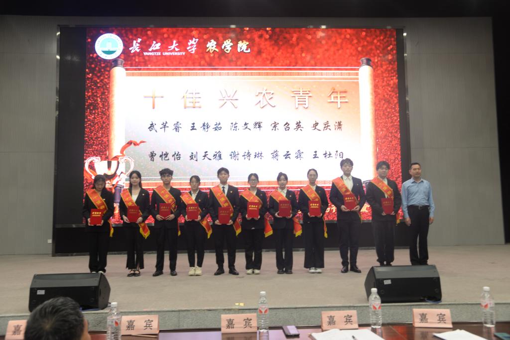 长大学农,大有作为。十佳兴农青年的颁奖仪式上,学院副院长苏奇教授宣读了第十四届“十佳兴农青年”的表彰决定,党委书记周锦华老师为十佳兴农青年颁奖并合影留念。
