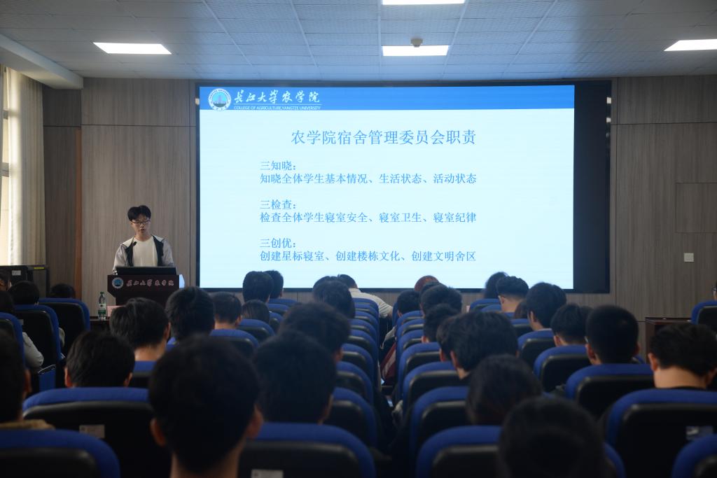 首先,由宿委会副主任刘佳豪进行发言。他从认识宿委会,宿委会成员介绍,宿委会工作介绍 ,77779193永利集团提出工作要求,安全委员的职责,对安全委员的工作要求这六方面展开叙述。明确了寝室建设细则,例如“三知晓、三检查、三创优”并对学生在寝生活提出具体要求。