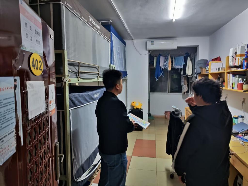 每到一处寝室,学院的领导们都亲切地与同学们交谈,详细询问大家的学习进度、课程难度以及生活中遇到的困难和问题。其中在走访过程中,副书记尹小华老师特别强调了学习氛围和宿舍环境对学生成长的重要性。他鼓励同学们要珍惜大学时光,努力学习专业知识,同时也要注意保持良好的生活习惯。主任黄承石老师则针对同学们提出的学业上的困惑,给予了耐心的解答与指导,并勉励大家要勇于面对挑战。