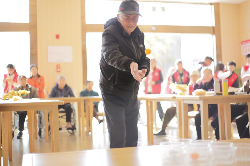 同学们精心准备了多种游戏,如简单易懂的投球等。活动过程中,同学们与老人们亲切互动,耐心讲解游戏规则。在投球游戏里,老人们思维敏捷,多次准确猜投中,脸上洋溢着自豪的笑容。现场气氛热烈而温馨,欢笑声回荡在敬老院的每个角落。