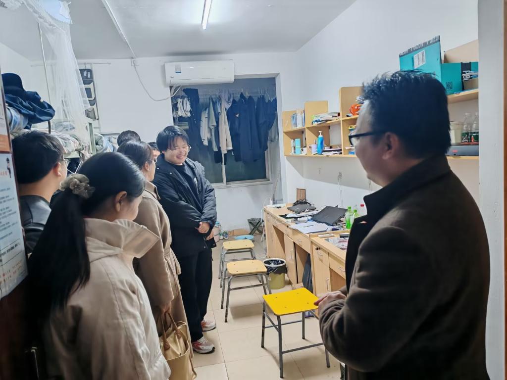 每进入一间宿舍,学院的老师们都和蔼地与同学们交流,细致询问大家的学业进展、作业完成情况以及生活里遭遇的烦心事和困扰。走访期间,老师们着重指出了学习氛围和宿舍文化对学生素养提升的关键意义,激励同学们要把握青春岁月,并且也要注重营造和谐的宿舍氛围。