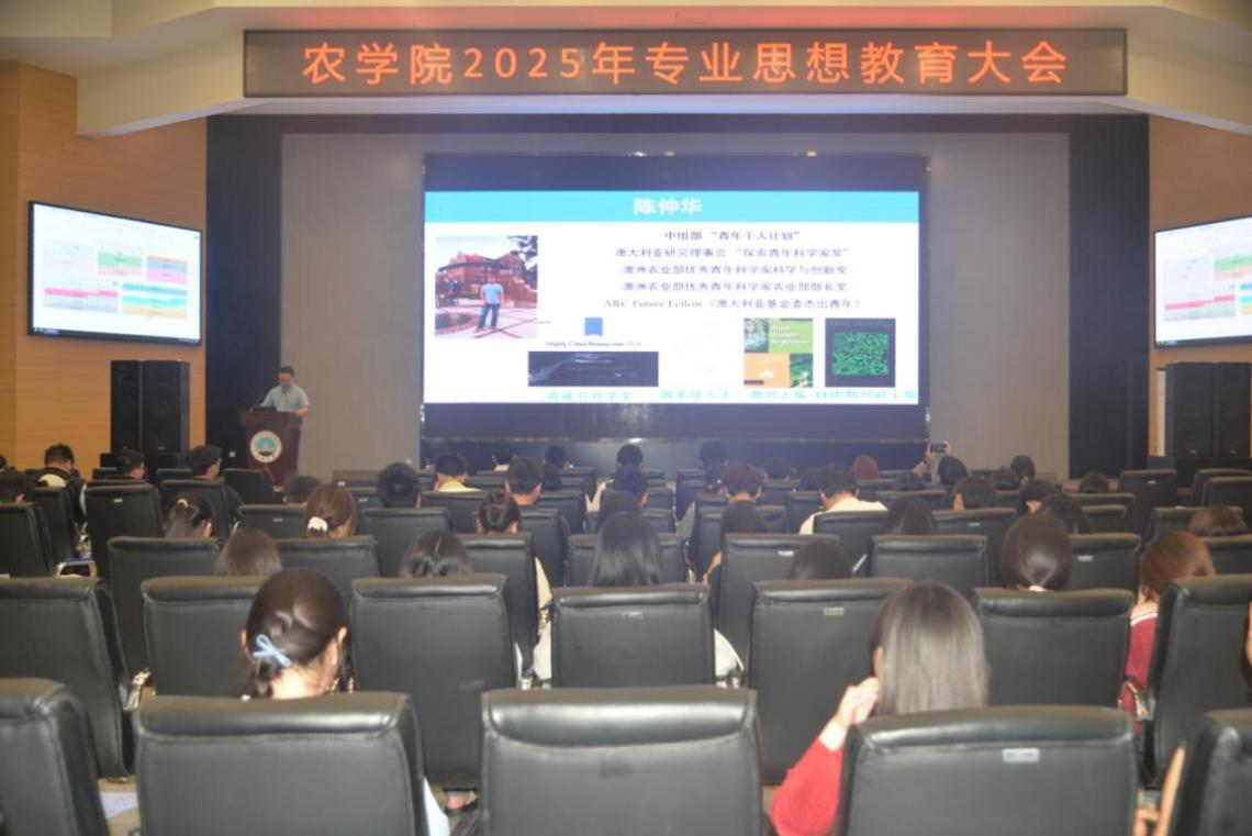 (通讯员 吴静宜 涂星雨/文 郑怡乐 赵雨洁/摄)为强化农科学生专业思想,激发科研热情,4月15日19:00,学院邀请知名学者陈仲华教授在农科大楼1058报告厅为全体大一大二学生作专业思想教育讲座。讲座由副书记尹小华主持,农学系覃元老师、年级辅导员付雪娇老师出席本次大会。