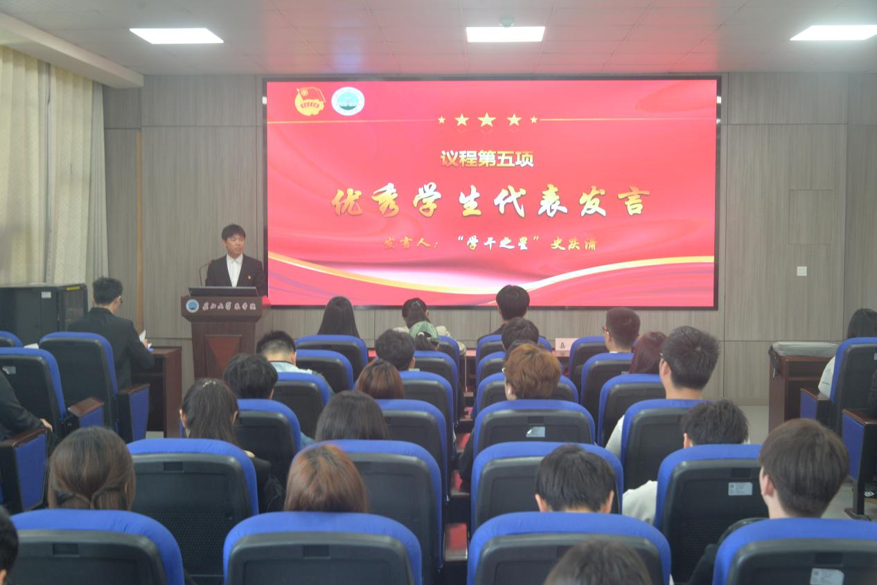 表彰结束后,在“万人创百星”中获评“学干之星”的史庆潇同学,为学弟学妹带来了一场干货满满的分享会。史庆潇同学从个人梦想、学习实践、学干经验、志愿服务等方面讲述了自己三年来的感悟收获和经验总结,他鼓励广大团员要勇于尝试、勇于创新,要有不怕出错的胆量和勇毅前行的动力,要早进实验室,充分利用学院为我们搭建的优秀平台。场下的同学们听后纷纷表示,优秀并非偶然,而是源于坚定的信念、不懈的努力和脚踏实地的行动。