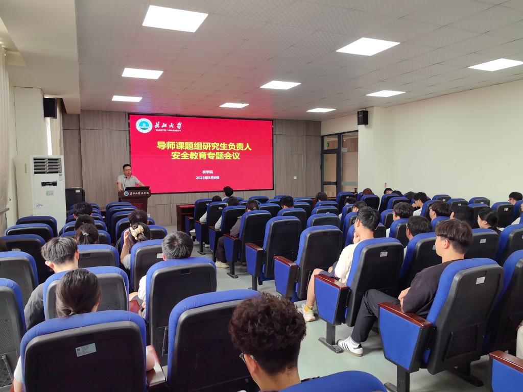 院党委副书记尹小华围绕学生安全教育、心理健康、交通出行、网络诈骗、负面舆情等方面,全面深入分析了生活中可能存在的问题与风险。他还特别针对实验用品的规范使用进行了着重强调,为同学们敲响了安全警钟。同时,他对课题组研究生负责人提出明确要求,要切实肩负起责任,做到对危机苗头敏锐洞察、及时上报,秉持预防为先、防治并重的原则,全力消除各类安全隐患,充分保障研究生的身心健康,以高水平校园安全助力学校高质量发展。