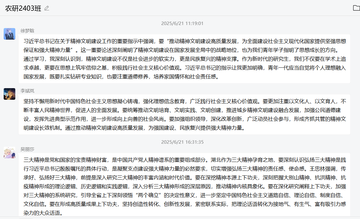此次政治理论学习活动不仅提升了研究生的政治素养,更激发了大家投身科研报国的热情。接下来,我院将持续深化理论武装,创新学习形式,引导研究生在服务国家重大战略中书写青春华章。