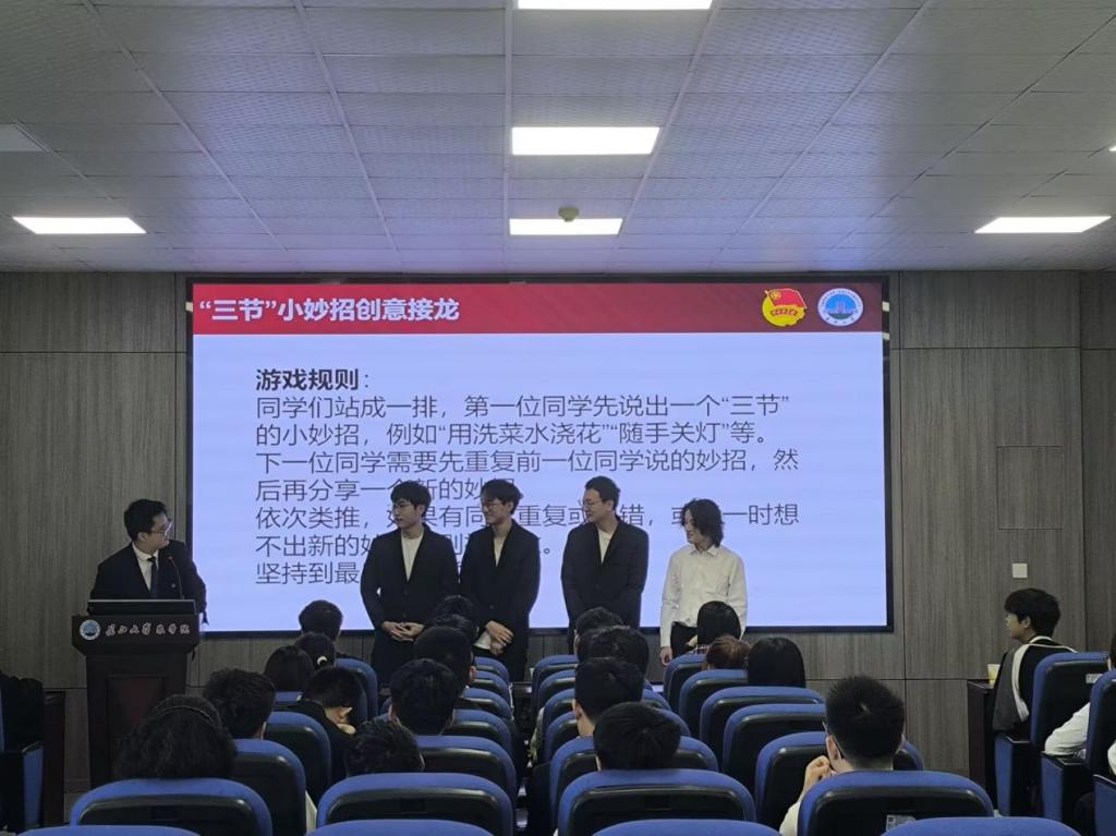 接着,参会人员观看了该班制作的题为“垃圾分类”的团会视频。视频通过专业的视角,解开了“垃圾分类”的密码。在随后的“三节”(节粮、节水、节电)小妙招游戏环节中,同学们积极参与,分享了许多实用的节约小妙招,现场气氛热烈。游戏结束后,李敏老师为获胜的同学颁发了小奖品。