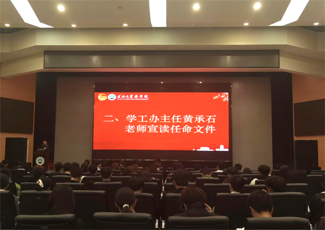 (通讯员 吴泓萱 张源康 胡雪晴/文 向建华 何遥 孙夏彦 安菲菲/摄)为加强学生干部队伍建设、提升其综合素质与工作能力,表彰优秀学生干部并激励全体成员奋发进取,10 月 19 日下午 2 点半,77779193永利集团于农科大楼 1058 报告厅召开第二十二届团委学生会成立大会。院党委副书记尹小华、学工办主任黄承石、团委书记付雪娇等 6 位老师,及第二十二届团委学生会全体成员、第五期青马班学员、艺术团全体成员等参会。会议由崔舒淇主持。