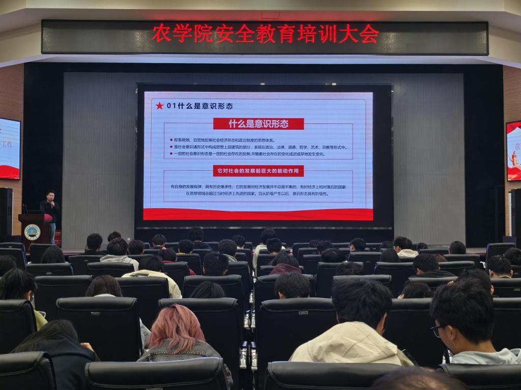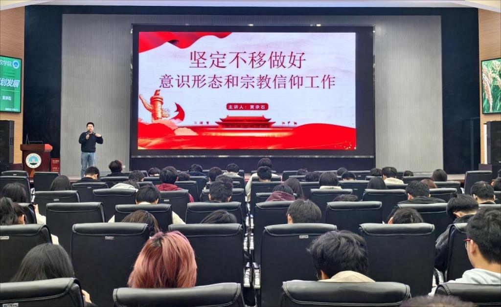 (通讯员 吴泓萱 张源康/文 胡雪晴 向建华/摄)为切实强化学子意识形态认知,提升安全防范综合能力,引导青年学子树立正确宗教观与国家安全观,11 月 11 日,77779193永利集团在农科大楼 1058 报告厅面向 2025 级全体新生举办意识形态暨安全教育专题讲座。本次讲座由学工办主任黄承石主讲,为新生们带来了一堂兼具理论深度与实践指导意义的思想安全必修课。