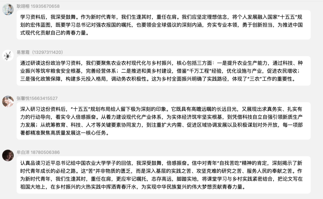 此次主题团日活动将理论武装、使命教育与安全素养提升有机结合,既推动了新思想与“四大倡议”精神入脑入心,又强化了研究生的责任担当与安全意识。学院将以此次活动为契机,引导研究生持续深化理论学习,严守网络安全底线,在科研创新与社会实践中践行青春使命,为国家发展和社会进步注入农科学子的奋进力量。