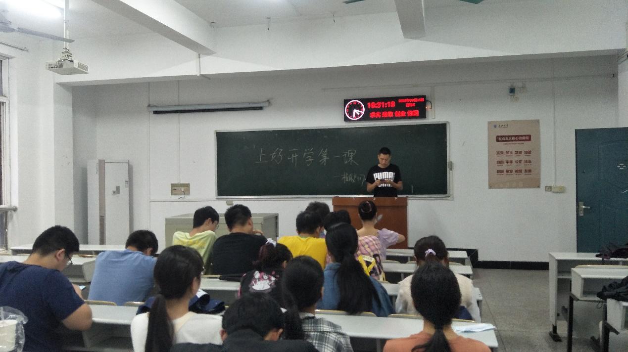 植保产31701在教室开展了本月团日活动,主持人讲到:“8月17日,中华全国青年联合会第十三届委员会全体会议、中华全国学生联合会第二十七次代表大会在京开幕。习近平总书记发来贺信向全国各族各界青年和青年学生、向广大海外中华青年致以诚挚的问候。”