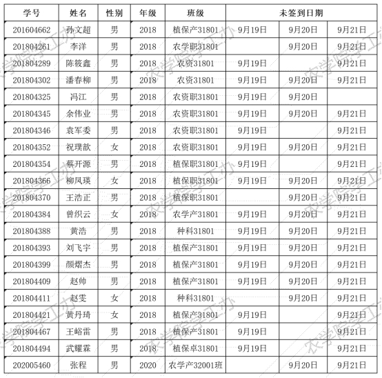 根据疫情防控形势以及学校要求,我院一直实行每日健康打卡制度,在中秋节期间(2021年9月19日-9月21日),经分管辅导员、学工助理、班干部多次提醒,仍有孙文超等21名同学未在规定时间内完成打卡,具体未打卡次数及日期如下: