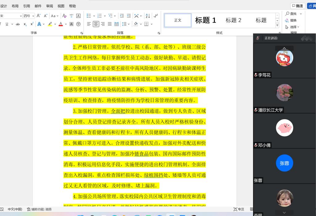 通讯社讯(通讯员 李慧明)为防止新冠疫情出现蔓延,保障学生们的正常学习生活,增强学生主动防控意识,我院组织各班于5月12日-5月14日陆续召开关于加强疫情防控的主题班会。会议结合线上、线下在各班副班长的主持下顺利进行,我院全体在校本科生参加此次班会。