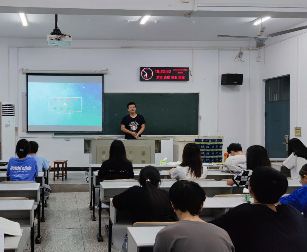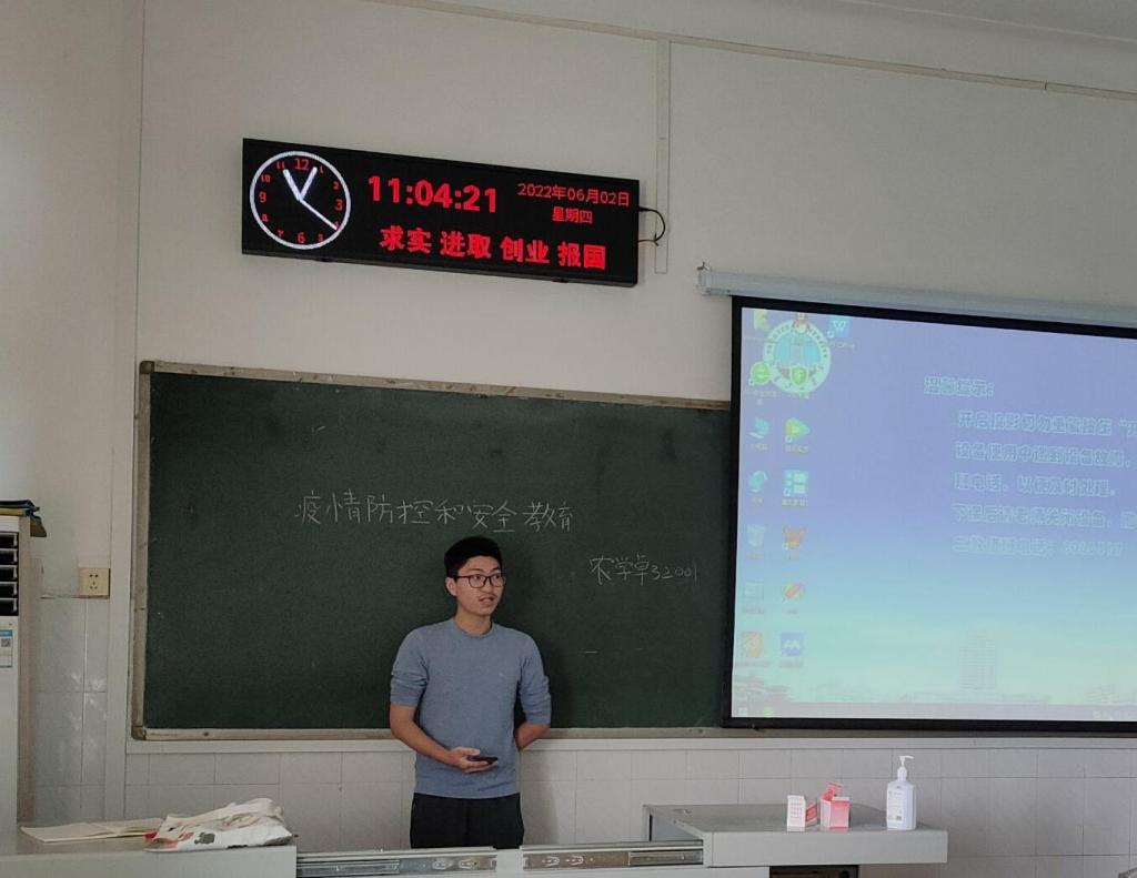 6月2日晚7时30分,植物类32101班在7教205召开主题班会,副班长李梓群就疫情防控教育、防溺水安全教育、反诈安全教育以及诚信参考四个点开展班会。他例举高校学生违反疫情防控政策相关案例以警醒同学们疫情防控形势十分复杂,切不可麻痹大意。防溺水方面,他告诫我们绝不私自下河游泳,绝不擅自与同学结伴游泳,绝不在无安全设施、无救护人员的水域玩耍游泳。而后通过播放广西一名网友分享的落水自救短视频,教授同学们如何在落水后使用“漂浮术”自救。