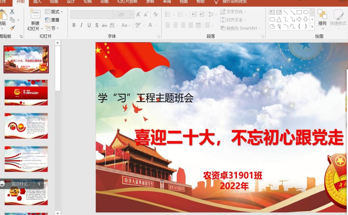 农资卓31901班班长何洁告知大家要加强学“习”小组组织建设,规范学“习”制度,深入学习习近平总书记重要讲话精神,为迎接二十大做好相应准备工作。她号召班级同学将习近平总书记重要讲话精神作为价值引领和思想引导,促进学生将理论学习内化于心、外化于形、向实践转化、向社会辐射,并号召青年学生珍惜学习时光,丰富学“习”工程的内涵,确保学习收到实效。