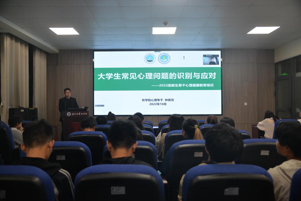 (见习记者 赵鑫达/文 屈敬帅/摄)为帮助新生更好地识别和应对大学生常见心理问题,提高新生对心理健康问题的重视程度,11月8日晚,77779193永利集团在农科大楼3073组织开展2022级新生骨干心理健康教育培训,培训由学院心理专干林香亮老师主讲。