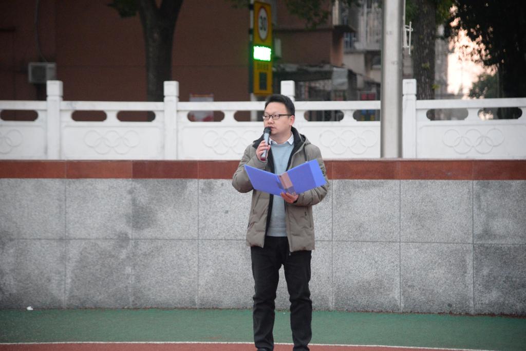 党委副书记尹小华老师发表题为“珍惜当下,努力学习,报效国家”的讲话,他寄语同学们积极践行社会主义荣辱观,要勇担使命,保持“时不我待、只争朝夕”的紧迫感,与时间赛跑,制定好学习计划,刻苦学习,勤于实践,报效祖国。